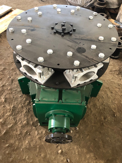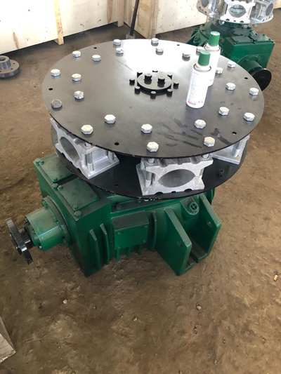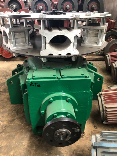 WB型循環(huán)水冷卻塔風(fēng)機專用減速機,是臥式外傳動減速機。該機采用傳動軸將電機置于風(fēng)筒外邊,改善了電機工作環(huán)境。設(shè)有塔外油標(biāo)及加、放油管路、球閥,可不停機檢查油位,及時加油。電機一般用6極或6/8級等多速電機,也可配4極電機。齒輪傳動采用一對傘齒輪和一對斜齒圓柱齒輪,齒面均為硬齒面;潤滑方式為浸油、甩油;傳動軸都經(jīng)過動平衡試驗且兩端均為彈性套柱銷聯(lián)軸器,保證了傳動的平穩(wěn)性,緩沖減振性好,適合塔內(nèi)環(huán)境。當(dāng)環(huán)境溫度較低潤滑油接近凝固時,基若要啟動須加熱融化后方可運行。
