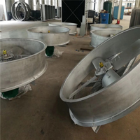 風機:為低轉速空間扭曲前傾式鋁合金冷卻塔專用風機。風機選用優質的鋁合金板材機壓成形,全部風機均為可調校角度式,能滿足客戶對風量等工藝方面的不同要求。風機出廠前均經嚴格的平衡及定位,確保其性能的可靠性。四葉型前傾板式設計,使每片葉片受力小,從而具備震動小,噪音低,效率高、耗電省之優點。具有噪聲低、環保的作用。與布水器(管)、冷卻電動機配套作為冷卻塔的循環水處理系統。